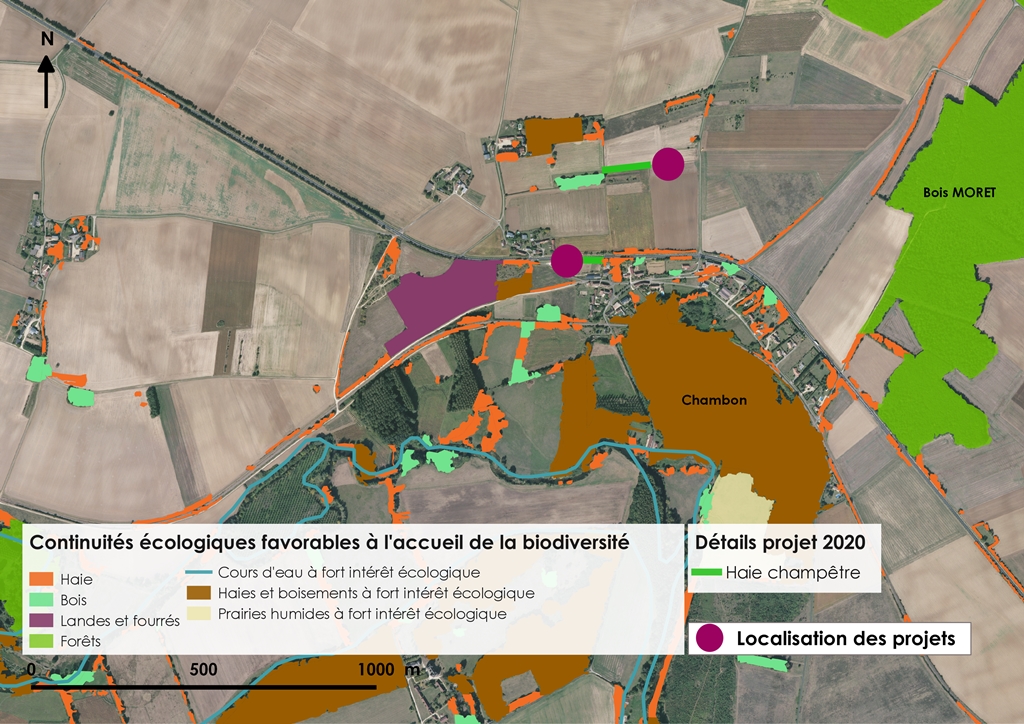 La future plantation n’a pas vocation à venir renforcer ce réseau de continuités écologiques, même si elle s’ajoute au maillage bocager et boisé de la commune. L’objectif est plutôt de créer un espace de transition permettant aux espèces (insectes, petits mammifères et passereaux principalement) d’y trouver une nouvelle ressource alimentaire ainsi qu’un nouvel espace de repos.